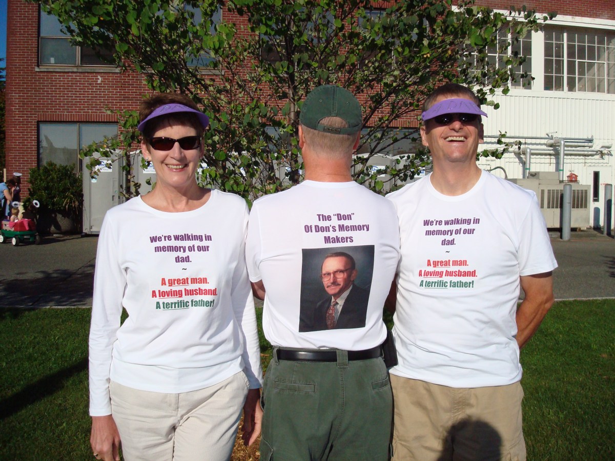 My father died of Alzheimer’s 10/13/2007. I’m on the left, then my hubby, then my brother.