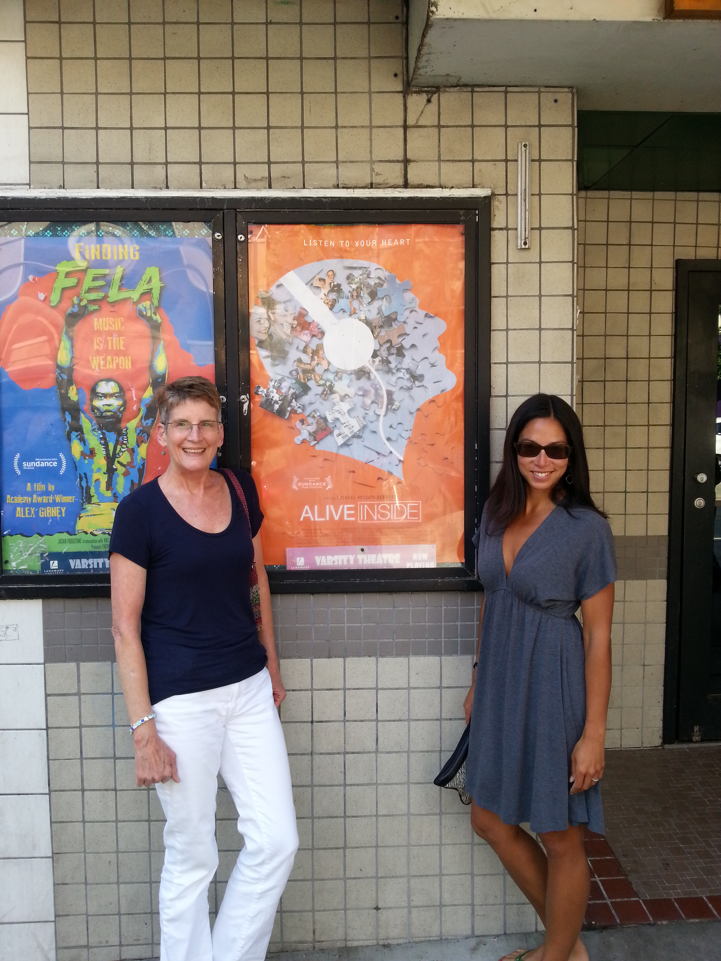 My daughter & I outside the Varsity Theatre, Seattle, after viewing the documentary.