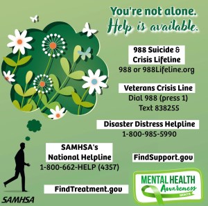 Perhaps in addition to the above poster, this site would also be a helpful resource for all of us: NAMI
